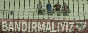 Karşılaşmanın en ilginç görüntüsü Bandırma’dan gelen 4 cefakâr taraftarın tribün görüntüsü oldu.