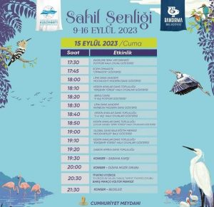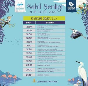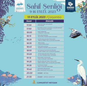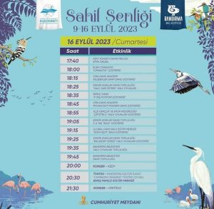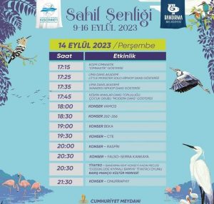 Festival, her yıl olduğu gibi bu yıl da 9-16 Eylül tarihleri arasında düzenlenecek olan Sahil Şenliği ile başlayacak. Bu etkinlikle; Kent ve bölge genelinde sanat üreten gruplara sahneye  çıkma şansı tanıyor.