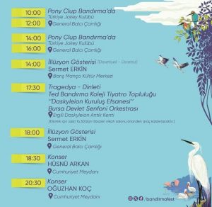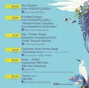 “Festival ile çevresel faktörleri farkındalık yaratmak dikkat çekmek amacıyla katkı sunmayı amaçladıklarının altını çizen Erten;  “Söyleşiler, sergiler, konserlerle  Festival boyunca halkımızla beraber olacağız. Bandırma ili olmaya namzet. Biz de hem de aynı zamanda kentin kültürel ve sanatsal hayatına birlikte verdiğimiz katkılarla birlikte festivalimizle birlikte kendimizi tanıtmaya devam ediyoruz aynı destekle beraber omuz omuza yürüyerek bu süreci tamamlamak istiyoruz.” dedi.