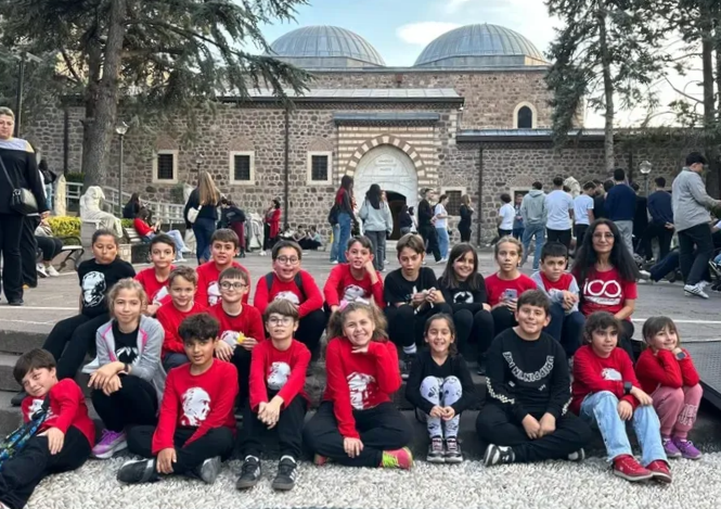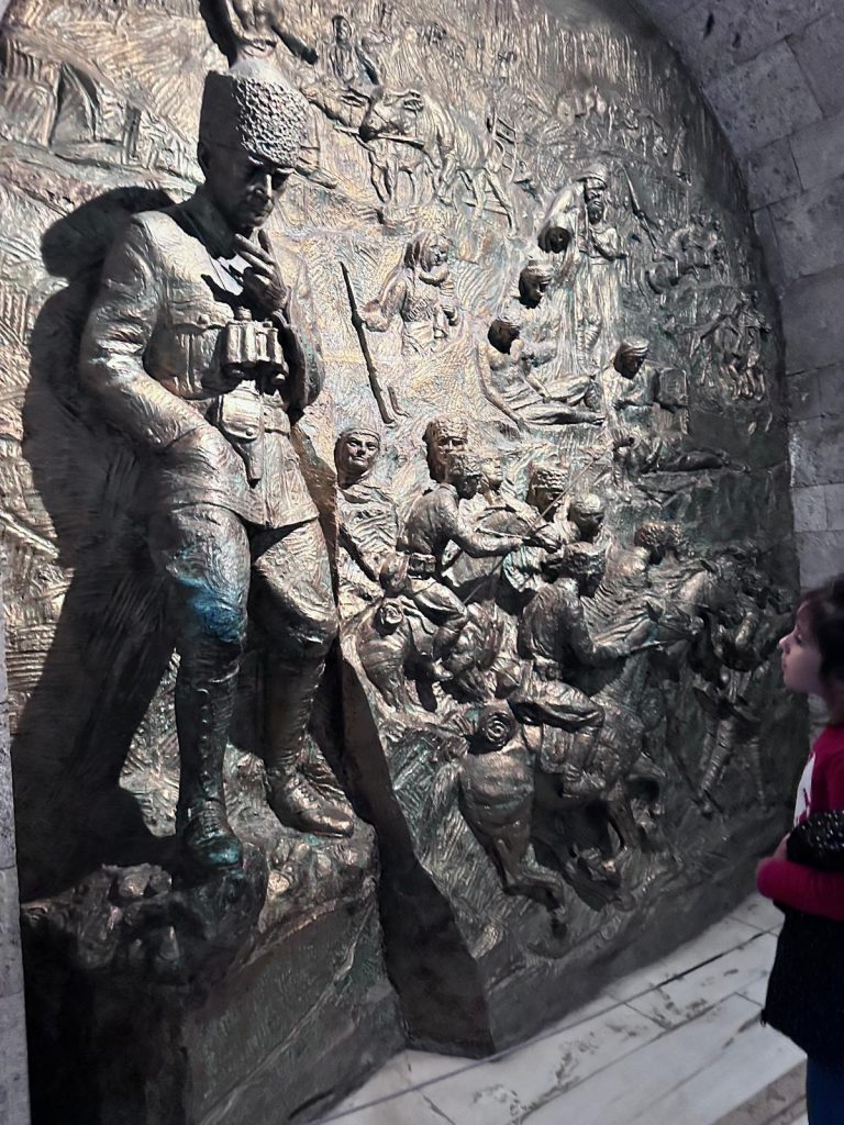 Sınıf Öğretmeni Semra Akyaz, öğrenciler ve velileriyle; Aslanlı Yol’dan yürüyerek, mozoleye çiçek bırakıp, saygı duruşunda bulundular.
