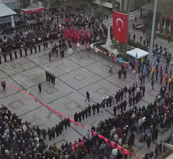 Saatler 09:05’i gösterdiğinde tüm Türkiye’de olduğu gibi Bandırma’da da siren sesleriyle birlikte 2 dakikalık saygı duruşunda bulunuldu. Saygı duruşunun ardından okunan İstiklal Marşı’yla Cumhuriyet Meydanı’nda bayraklar yarıya indirildi.