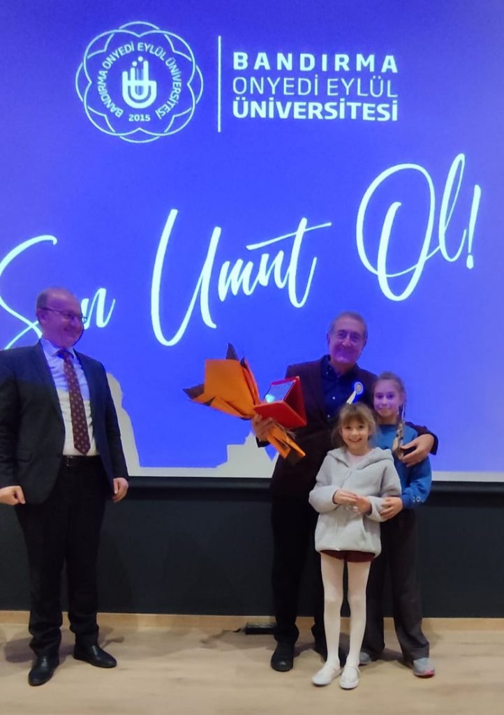 Konuşmaların ardından büyük bir ilgi ve heyecanla izlenen “Kuş Gölü Öyküleri” konulu saydam gösterisi sonrası Bandırma Onyedi Eylül Üniversitesi Rektörü Prof. Dr. İsmail Boz, Bayraktar’ı kutlayarak, “Son haftanın en güzel saatini geçirdim.” dedi.