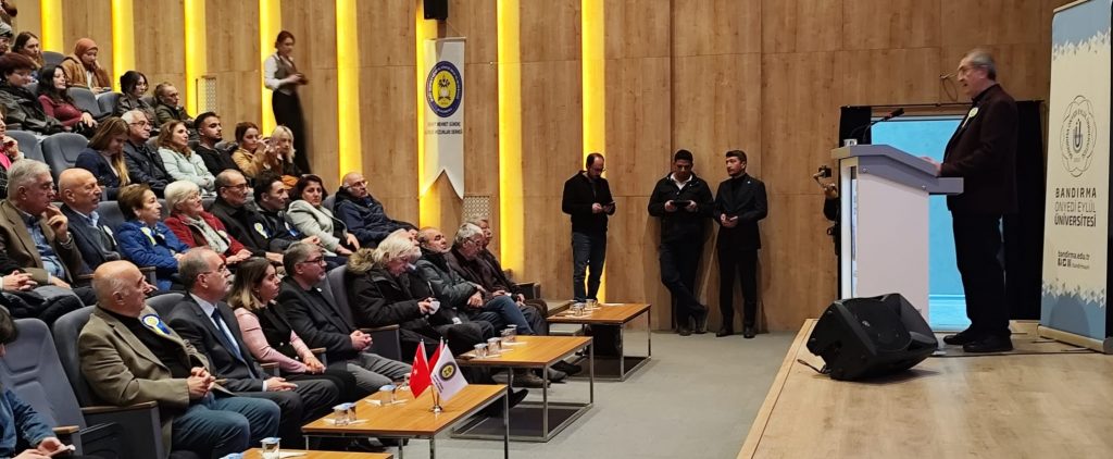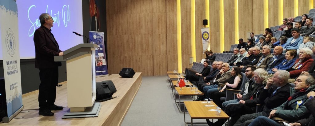 Bandırma Onyedi Eylül Üniversitesi Rektör Yardımcısı Prof. Dr. Alpaslan Serel, etkinliğin anısına Bayraktar’a plaketini takdim etti.