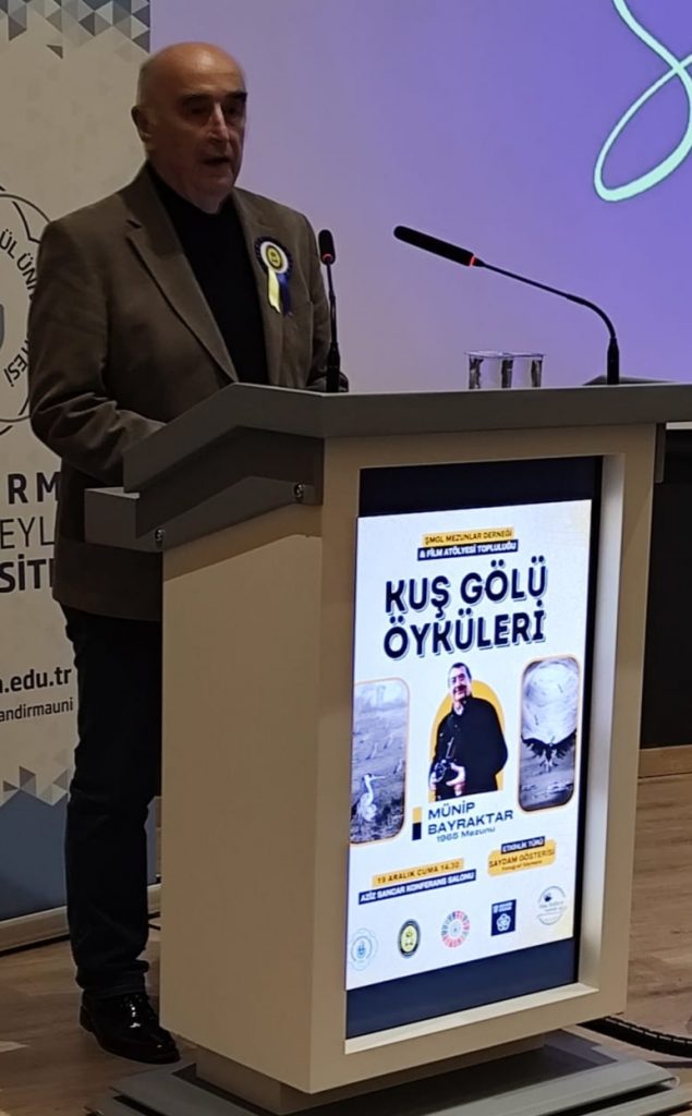 Bandırma’da fotograf sanatının sevilmesi ve gelişmesinde büyük katkıları olan Bandırma Fotograf Sanatı Derneği BANFAD’ın kurucularından, Duayen Fotograf Sanatçısı Münip Bayraktar, Bandırma Onyedi Eylül Üniversitesi’nde; Şehit Mehmet Günenç Lisesi Mezunlar Derneği ile Bandırma Onyedi Eylül Üniversitesi Film Atölyesi Topluluğu’nun ortaklaşa düzenledikleri “Kuş Gölü Öyküleri” konulu saydam gösterisinde fotografsever dostları ve öğrencilerle buluştu.