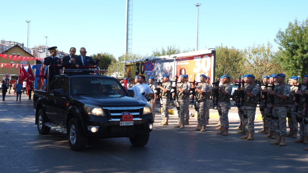 Cumhuriyet Meydanı’nda Atatürk Anıtı’na çelenklerin konulmasıyla başlayan törenler, Cumhuriyet Caddesinde; günün anlam ve önemi ile ilgili konuşmalar ve şiirlerin okunması, halk oyunlarının gösterileri, askeri birlikler, okullar, sivil toplum kuruluşları ile İlçedeki resmi-özel kurum ve kuruluşları araçlarının katıldığı  resmi geçit töreni ardından Ayyıldıztepe’deki Son Kurşun Anıtı’nda devam edildi.