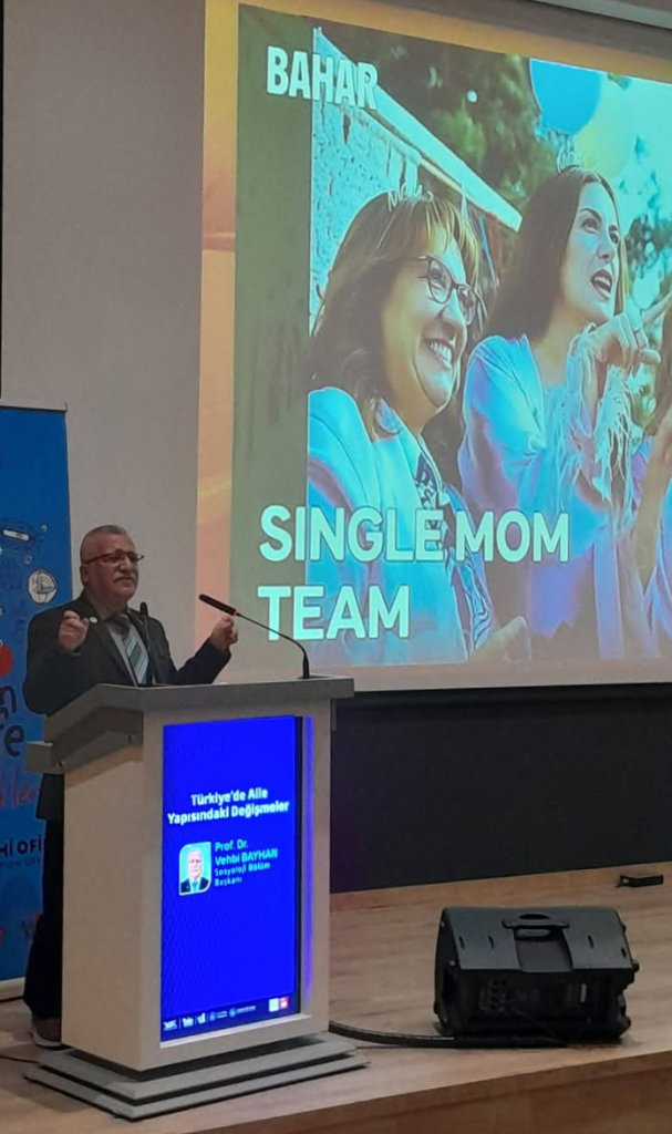 Konuşmasında 2025 yılının “Aile Yılı” ilan edilmesinin önemine değinen Prof. Dr. Bayhan, aile kurumunun toplumsal yapı içerisindeki merkezi rolüne dikkat çekti. Medya ve özellikle televizyon dizilerinin aile sosyolojisi üzerindeki etkilerini örneklerle açıklayan Bayhan, yıllara göre isim dağılımlarındaki değişim üzerinden dizilerin kültürel tercihler üzerindeki yansımalarını değerlendirdi.